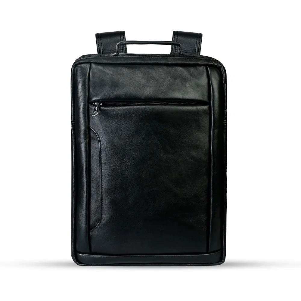 100% Genuine Cow Leather Unique Smart & Stylish 3 in 1 Backpack – Color: Black – View 1
