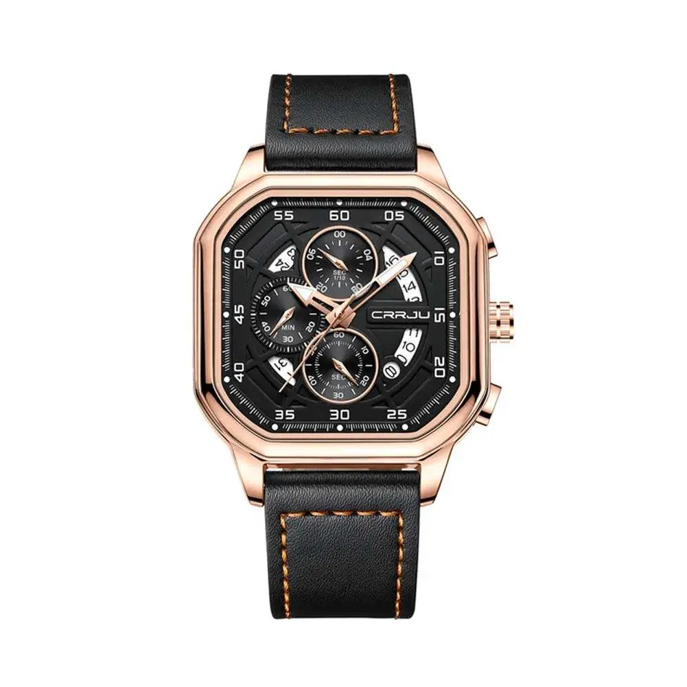 The Comfortable Original Genuine Leather Strap adds to the watch's overall sophistication and style, making it the perfect accessory for any casual or formal occasion. The Aesthetic Square-shaped Alloy Case exudes a sense of trendy style and highly sensible fashion. The watch is absolutely durable but still lightweight, greatly reducing the burden on the wearer’s wrist and providing a more free-wearing experience. This CRRJU 2314 watch presents a stylish fashion sense for all ages of men making it a daily driver watch for everyday outings whether at parties or corporate places.