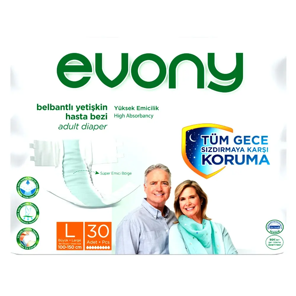 Evony Adult Diaper Belt is a reliable and comfortable solution for individuals who require extra support and security while wearing adult diapers. This innovative diaper belt is designed to hold the diaper in place, preventing leakage and ensuring maximum protection throughout the day or night. Evony Adult Diaper has breathable textile upper surface that reduces the discomfort caused by sweating due to the use of diapers. Even in long-term use, the skin does not lose its sense of freshness. Evony Adult Diaper is designed by taking into account the odour problem, which is one of most important problems of individuals with incontinence problem. The diaper prevents this problem with its odour control technology. The feeling of discomfort and restlessness caused by odour ends with Evony Adult Diaper.