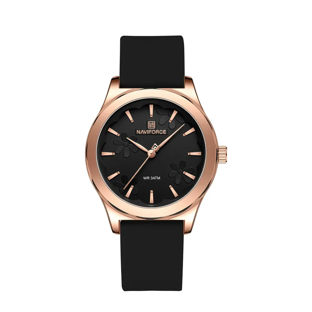 NAVIFORCE 5051 Fashion Women’s Watch 30m Waterproof Silicone Strap Casual Commuter Quartz Ladies Watch – Dial Color: Black, Strap Color: Black – View 1
