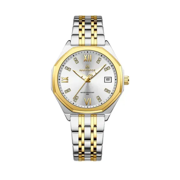 Naviforce 5052 Luxury Stainless Steel Quartz Analog Men's Watch – Dial Color: Gold, Strap Color: Gold  – View 1