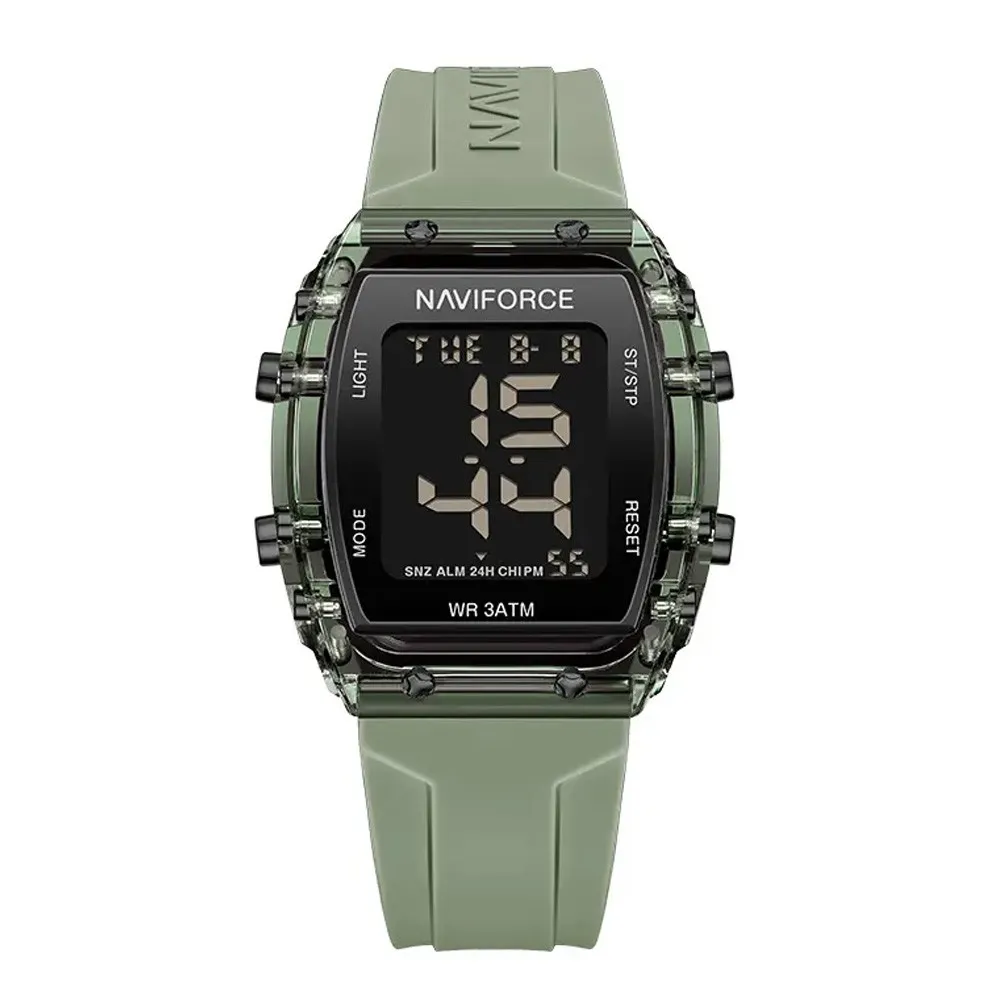 NAVIFORCE 7102 Transparent Digital Date Children’s Sports Watch – Dial Color: Black, Strap Color: Green  – View 1