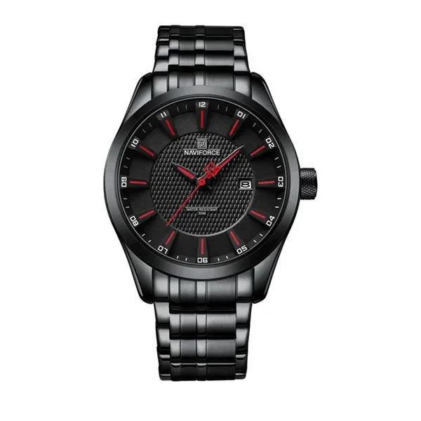 Naviforce 8032 High-Quality Stainless Steel Fashion and Casual Men’s Watch has Quartz Movement and is equipped with a creative calendar display ideal for modern men who pursue vitality, individuality, classness, and Fashion. High-quality Stainless Steel creative fashion men’s watch not only to enhance wearing comfort but also to offer bold aesthetics and hardcore temperament. The Naviforce 8032 seamlessly transitions from casual daytime wear to elegant evening attire and is designed for the modern and stylish man. It is the perfect addition to any men's wristwatch collection. The Naviforce 8032 wristwatch comes with a Stylish round-shaped alloy case and Hardlex crystal glass, presenting a visually stunning and classy but trendy outlook. With band width of 22mm, band length of 222mm, dial diameter of 44mm, and case thickness of 12.5mm the watch ensures fit and comfort for any man’s wrist. The watch is advanced Luminescent Display Feature ensuring that time can still be read clearly in dimly lit or completely dark environments. Moreover, The Naviforce 8032 watch offers features like Quartz analog movement, Auto Date, Water resistance, Week Display, Luminous hands, Shock resistance, and diverse color options at a very affordable price is just what every man needs.