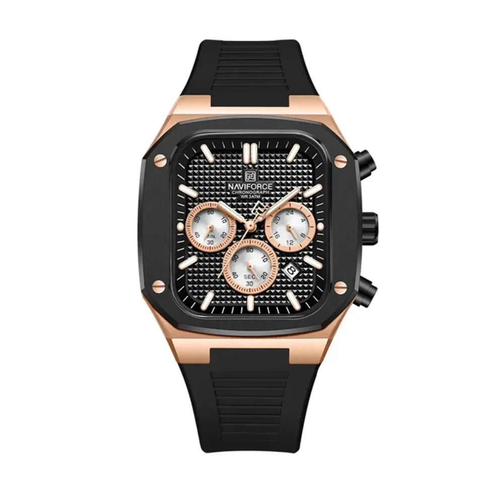 The Naviforce 8037 wristwatch comes with a Unique Square-shaped Alloy Case with Skeleton Dial and Mineral Glass, presenting a visually stunning and classy but trendy outlook. With Case thickness of 12mm, band width of 20mm, band length of 260mm, and dial diameter of 43mm. Moreover, The Naviforce 8037 watch offers features like Multifunctional quartz chronograph, Water resistance, Week Display, luminous hands, Shock Resistance, and diverse color options at a very affordable price is just what every man needs