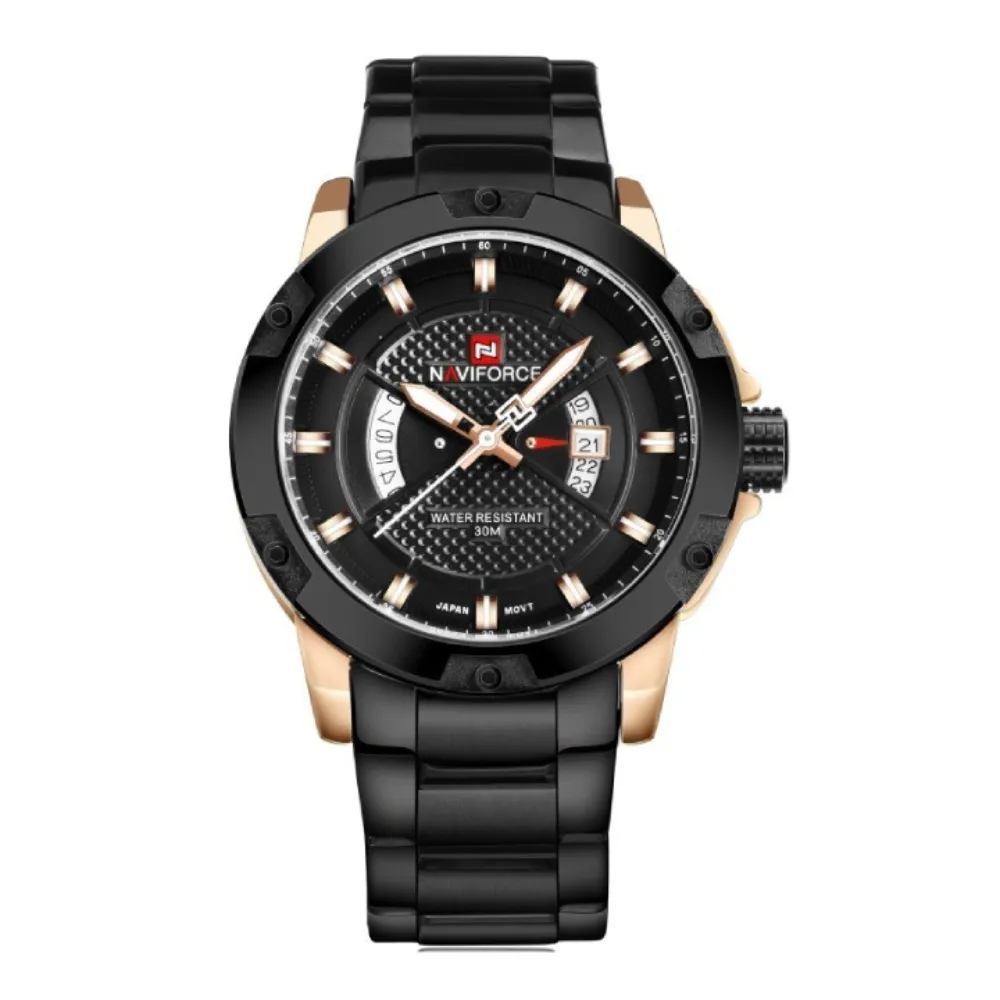 Naviforce 9085 Water Resistant Stainless Steel Quartz Men's Watch – Dial Color: Rose, Strap Color: Black – View 1