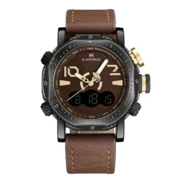NAVIFORCE 9094 Fashion Quartz Digital Dual Display Sports Men’s Watch is a stylish watch made for men who like both fashion and function together. This watch gives you quartz movement for accurate time and also a digital display, so you get two options in one watch. The design looks sporty but also elegant, so you can wear it in the office, at a party or even while traveling outside. Case is solid and strong, made from durable material that can handle daily use. The strap fits well on the wrist and feels comfortable even if worn for a long time. It shows both analog and digital time, so it is very easy to read in any place. The watch also has a calendar and useful functions like an alarm and a stopwatch, which make it a good choice for active people. NAVIFORCE is always known for giving quality watches at a good price, and this one is no different. It looks premium but is still affordable for customer in BD. The water resistance give extra safety, so no worry for small splash or rain. This model is popular among young people because of the modern style mixed with a strong sporty look. If you want something that looks good and also gives practical features, NAVIFORCE 9094 is right option.