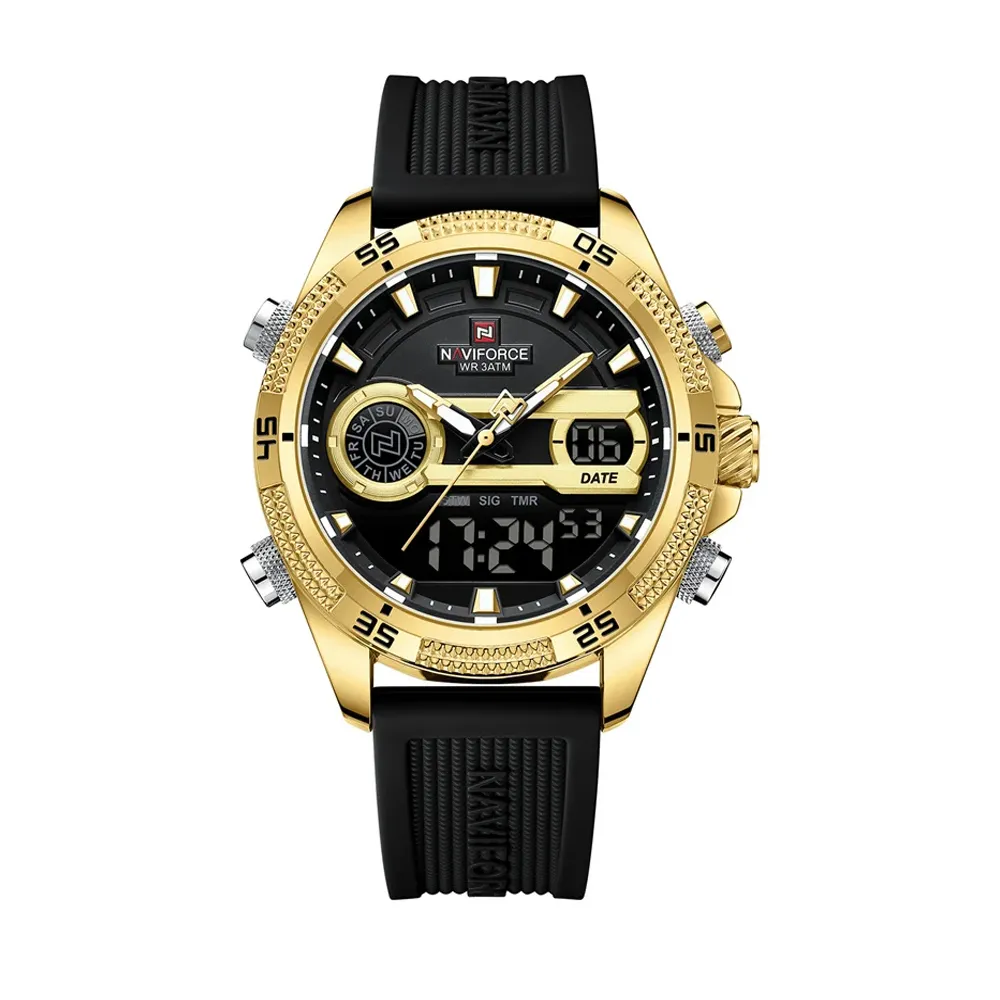 Naviforce 9223 Stainless Steel Dual Movement Military Sport Men's Watch has both Analog and digital movement, equipped with a creative calendar display ideal for modern men who pursue vitality, individuality, classness, and Fashion. High-quality stainless steel fashion men’s watch not only to enhance wearing comfort but also to offer bold aesthetics and hardcore temperament. The Naviforce 9223 Men's watch seamlessly transitions from casual daytime wear to elegant evening attire and is designed for the modern and stylish man. It is the perfect addition to any men's wristwatch collection.