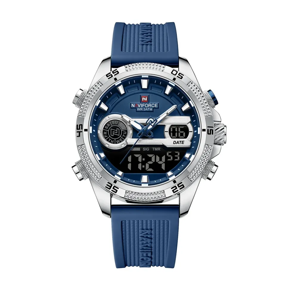 Naviforce 9223 Stainless Steel Dual Movement Military Sport Men's Watch – Dial Color: Blue, Strap Color: Blue – View 1
