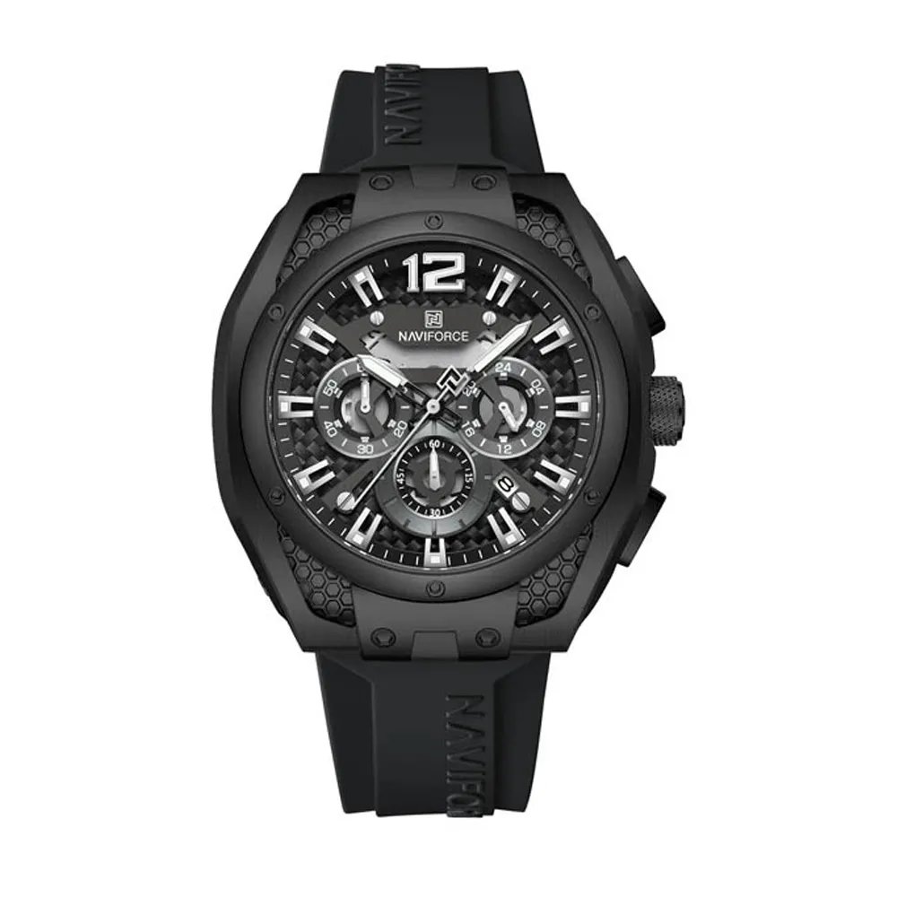 Naviforce NF 8063 Premium Silicon Strap Analog Sporty Men's Watch – Dial Color: Black, Strap Color: Black – View 1