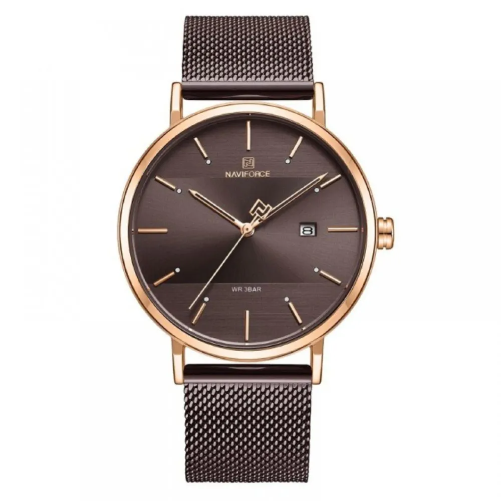 Naviforce NF3008G Analog Quartz Men’s Watch is a stylish watch made for men who want both a good look and reliable time. The design is modern but also keeps a classic touch, so it matches with office dress, casual wear, and even party dress. The round dial is clean and easy to read, with clear markers and smooth quartz movement. Strap feel strong and comfortable, so you can wear long time without problem. This watch is built with quality material that gives long-lasting performance. Many people like Naviforce because it brings good value at a fair price, and the NF3008G is the same, giving a nice design with a useful function. You can wear it every day or at special event, it fits both situations. The quartz movement makes sure time is always accurate, so you need to worry about being late. Body finish looks premium and shines nicely, which makes your style smarter. It is also a good choice for gift, as the brand is trusted and popular in Bangladesh. With this watch you get a mix of fashion, comfort, and durability in one piece. For men who want simple but classy look, this one is a very good option.