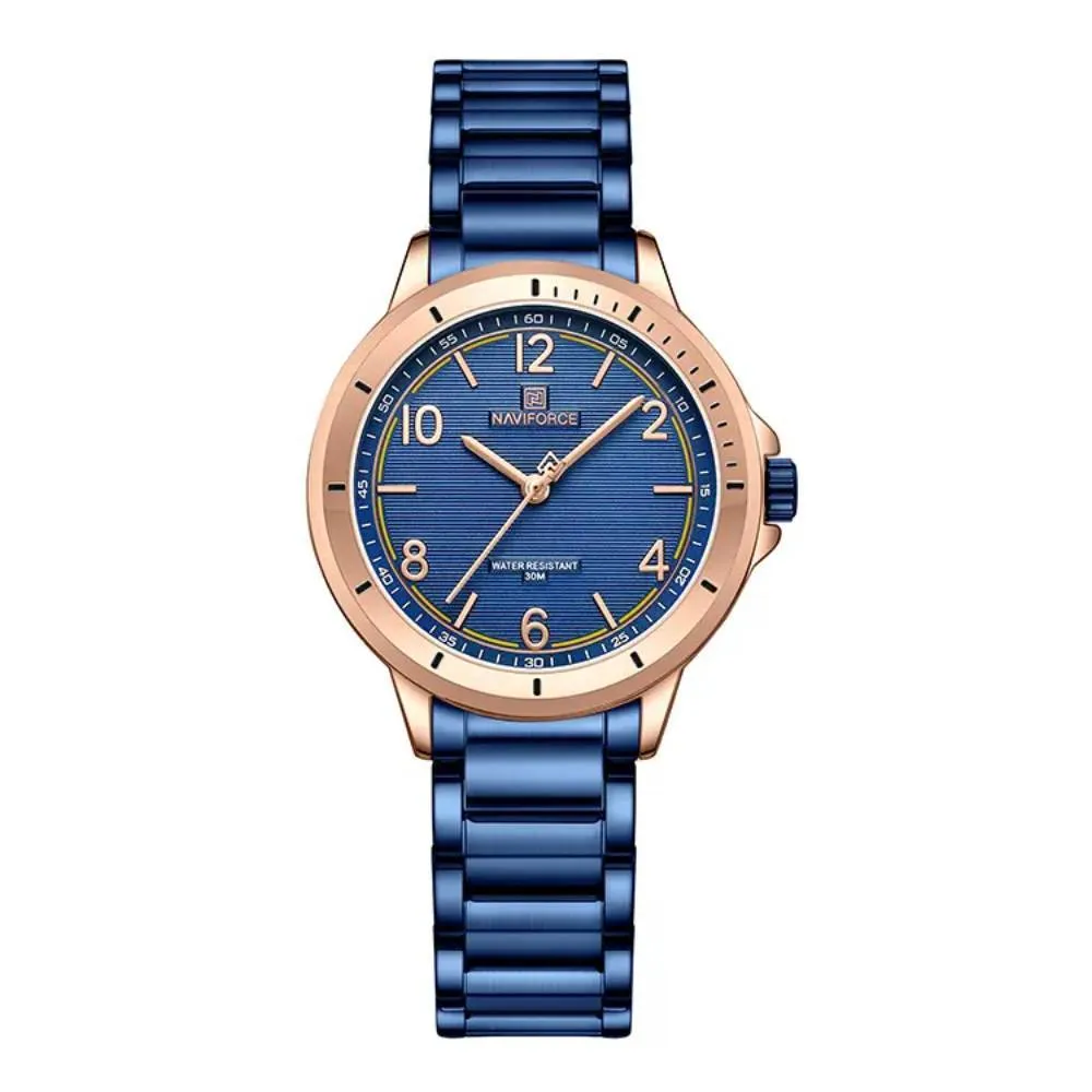 If you want a ladies' watch that looks modern but is still classy, then NAVIFORCE NF5021 Women's Watch is one to check. This watch is made with stainless steel body, so it gives a shiny and premium look that does not fade easily. The round dial looks elegant and can match with office dress, party outfit or even casual wear. It is designed for women who want something that is not too heavy but still feel solid in hand. The strap is also stainless steel, which sit smooth on the wrist and doesn’t give skin problems. Color finishing is beautiful, not cheap paint that goes away after few days. The glass on the dial is a strong type, so scratches do not come easily from daily use. Time marking is simple but stylish, so reading time is quick without confusion. It comes with quartz movement inside, which mean time always accurate and reliable. You no need to adjust every now and then like some local watch. The crown is easy to rotate and use, not too stiff. This watch is not just fashion but also practical. You can wear it for meeting, work, traveling, even small party, it always match your style. The build quality shows that it is not just another random fashion watch, but something that stay long with you.