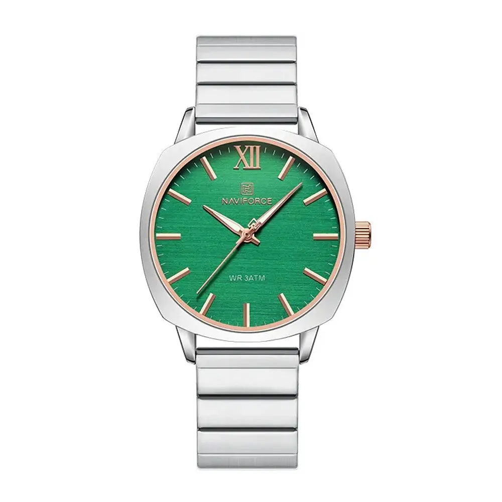 NAVIFORCE NF5044 Simple Square Waterproof Women’s Watch – Dial Color: Green, Strap Color: Silver – View 1