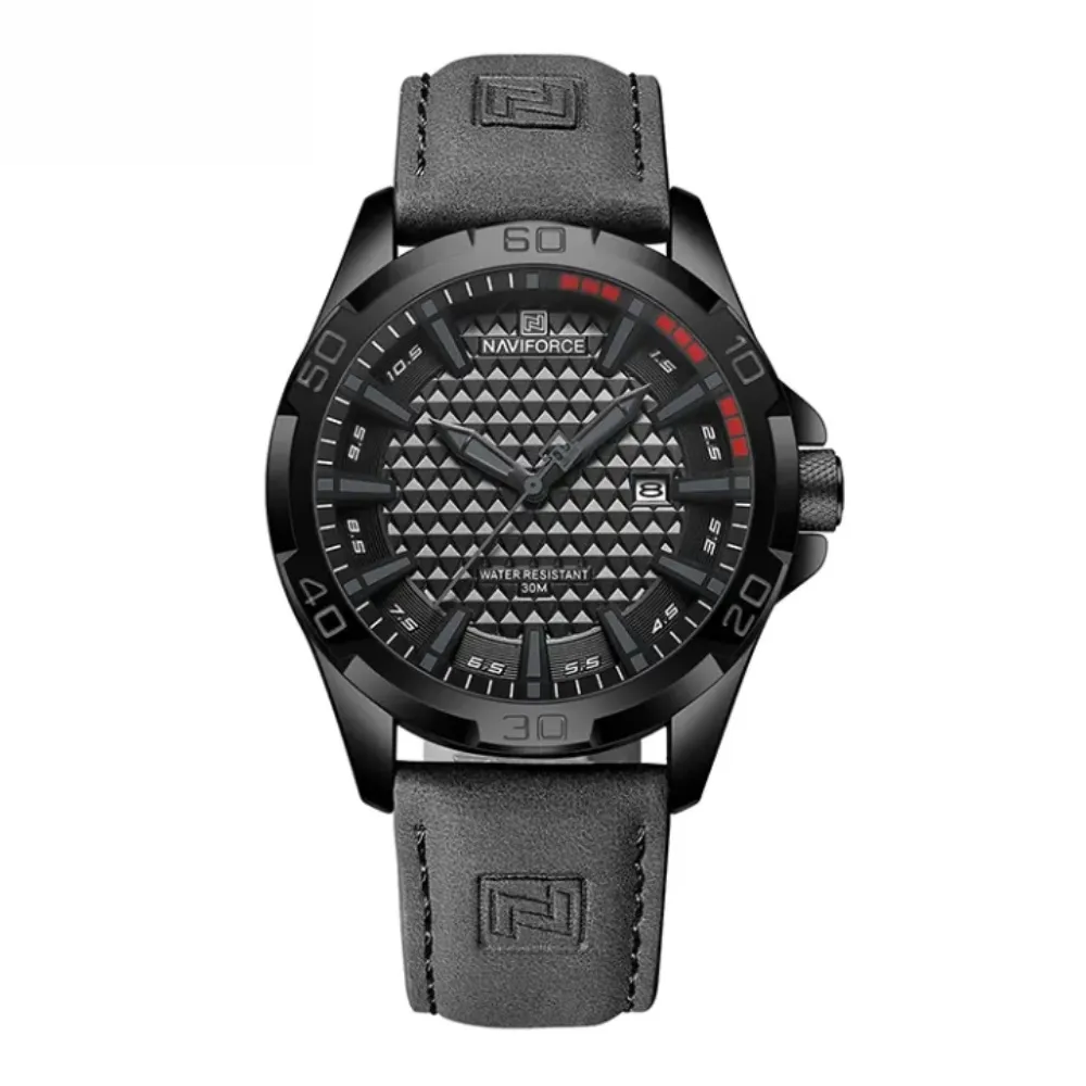 NAVIFORCE NF8023 Luxury Military Leather Sport Quartz Men’s Watch is made for men who want a strong stylish and useful watch all together. The design looks bold and smart, it feels premium in hand and gives a real military sporty vibe. Case is made solid and durable so it does not break or scratch easily. The leather strap is soft on wrist, so you can wear it for a long time without feeling pain. It combines both modern fashion and a tough outdoor look, good for people who want style but also want a long-lasting watch. The dial is clear and easy to read; numbers and markers are sharp so you can see even in a quick look. Inside it runs by quartz movement; that means timekeeping is accurate and steady. You can use this watch in the office, on outing, sport or travel, it matches with all. It is not just for showing time. This watch is also a fashion piece that makes your personality strong. Strap color and dial both look luxury, give premium feel in any dress. People who like sporty and military-type looks will find this watch perfect. NAVIFORCE always make watches with quality, and this NF8023 model is one of the best in their collection. If you want one watch that look smart, run long, and stay comfortable, this watch is the right choice.