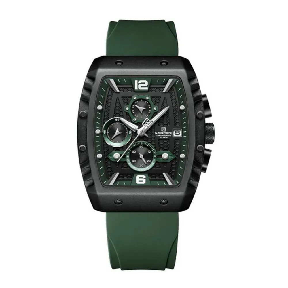 Naviforce NF8025 Quartz Silicone Chronograph Sports Men's Watch – Dial Color: Green, Strap Color: Green  – View 1