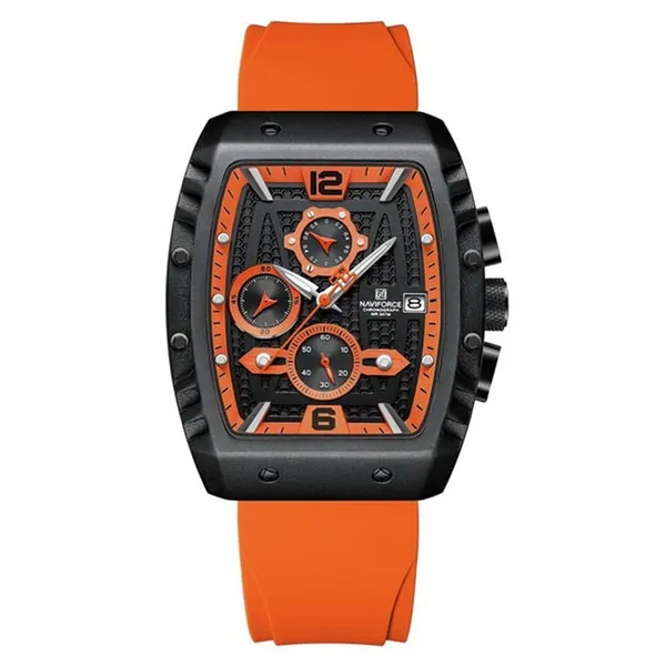 Naviforce NF8025 Quartz Silicone Chronograph Sports Men’s Watch is a stylish but also very useful watch made for men who like sporty design and also want strong performance. The look is modern, with a bold case and a nice finish that catches the eye quickly. It comes with silicone strap which is soft on the hand and also durable for long wear. Even if you wear it all day at work, at the gym, or outside, it not make your hand feel heavy or sweaty. The build quality is solid, with a strong body and glass that not scratch easily in daily use. Inside it runs with Quartz movement, so time is always accurate, with no delay problem. The chronograph function also give you more than just normal time; you can use stopwatch style for sports or timing activity. It show hours, minutes, seconds with clear dial that easy to read day or night. The design mix casual and sporty, so you can wear with t shirt, jeans or even with little formal also look nice. Water resistance also there, so no problem in light rain or sweat. This watch made for men who want one watch for all occasion, office, travel, gym or outside hangout. It give both good style and real function, not just for look but also for everyday use.