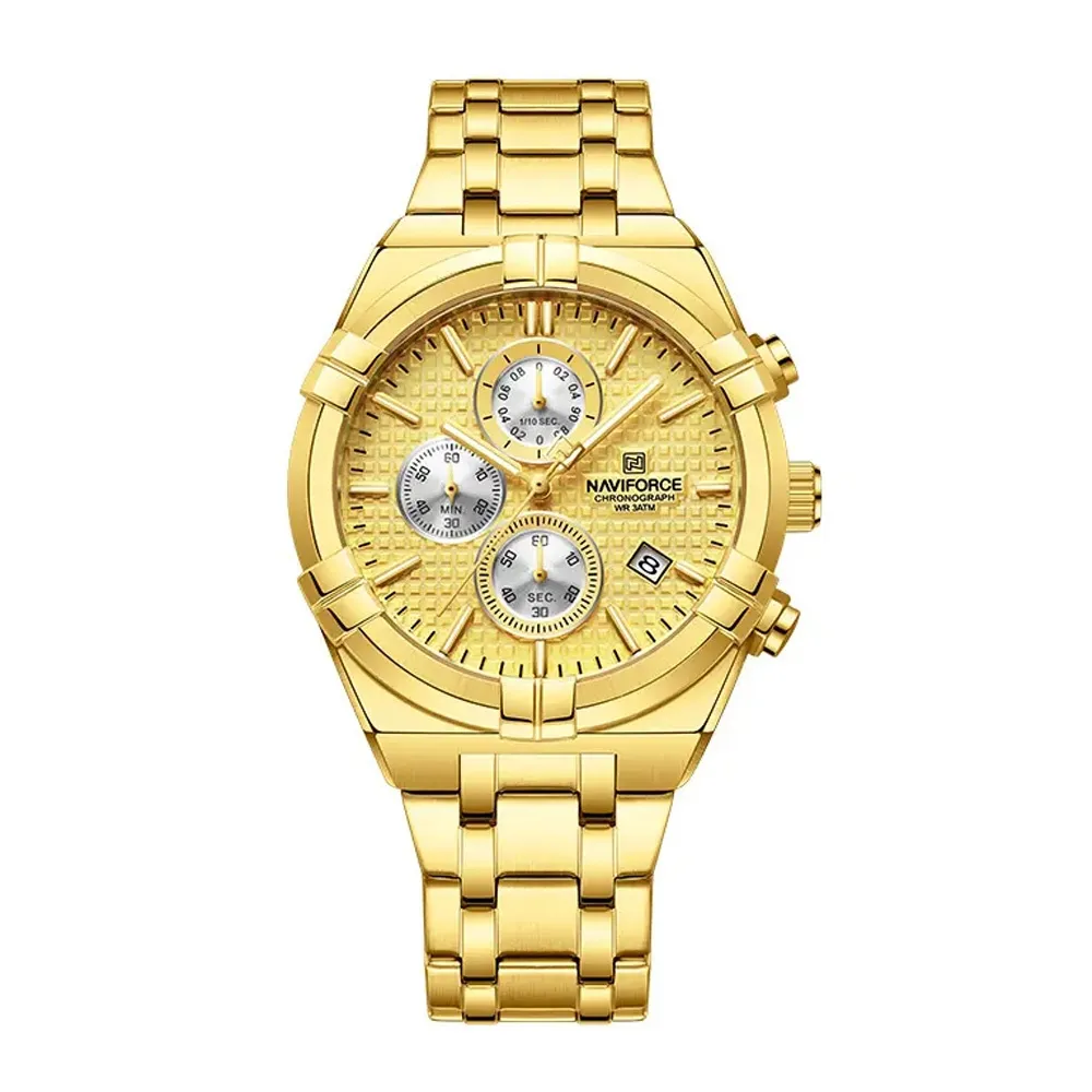 NAVIFORCE NF8042 Multi-function Luminous Men’s Watch – Dial Color: Gold, Strap Color: Gold  – View 1