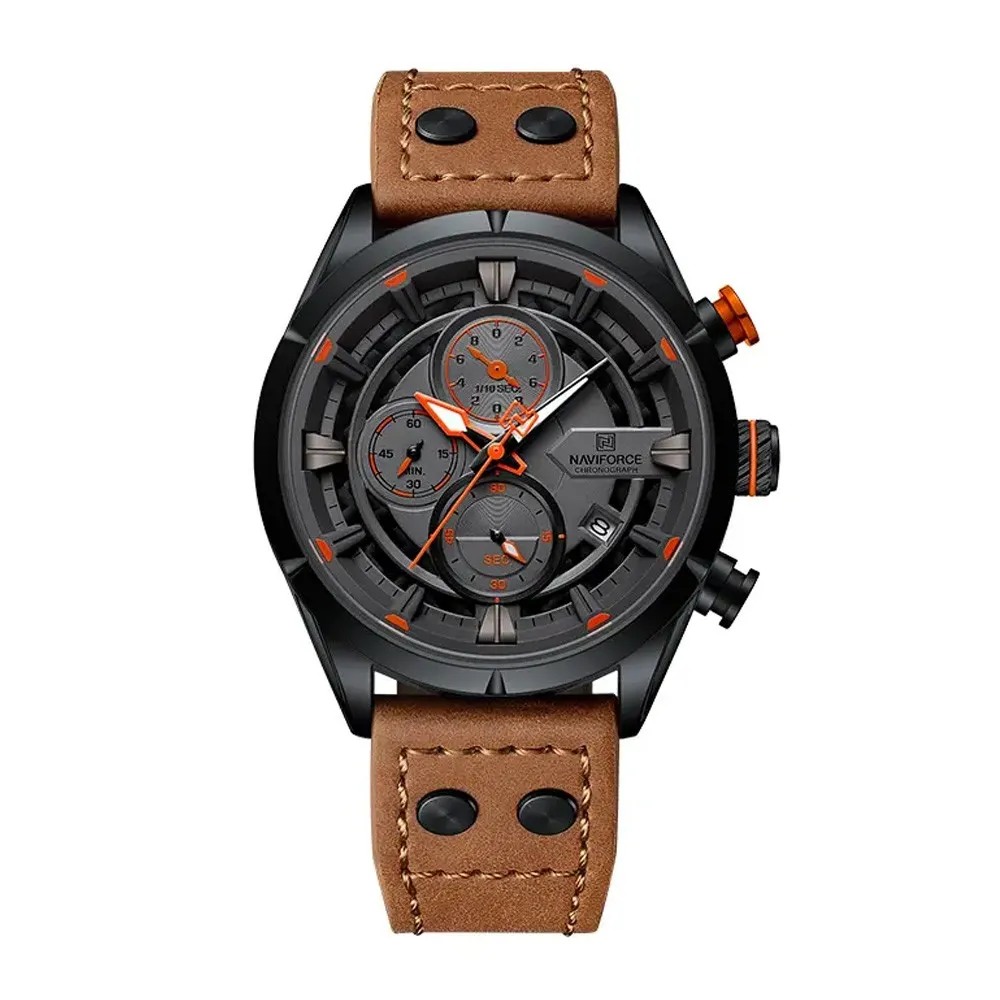 If you want a men’s watch that looks stylish but also feels classic, then Naviforce NF8045 Men's Watch is a really strong choice. This watch has that vintage design with a sporty vibe, so it looks good whether you wear casual or formal dress. The dial is bold and clear; numbers show up nicely so you can check the time quickly without struggle. It also got multi-function display, not just simple time, so you can see the date, day, and even the 24-hour format on one screen. Build quality also stands out—the body is made with a strong alloy case that gives a solid feel, not cheap plastic. The strap is made from genuine leather, soft on skin but also durable for daily wear. This leather strap gives that premium touch, and it gets an even better look the more you use it. The watch feels balanced in hand, not too heavy, not too light, so you can wear it for a long time without discomfort. Glass is a hardened mineral type, so scratches do not come easily, making it safe for daily rough use. With water resistance, you don’t have to worry about splashes, rain, or light washes. Overall, the NF8045 is a mix of old-school style and modern sports features, a watch that looks classy but is also practical.
