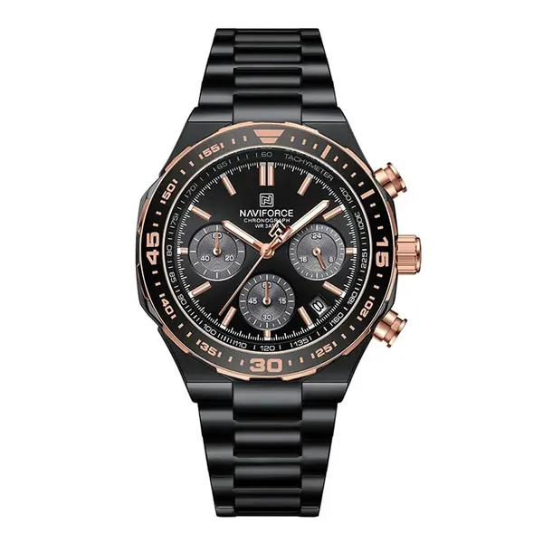 NAVIFORCE NF8049 Luminous Multifunctional Dial Men’s Watch – Dial Color: Black, Strap Color: Black – View 1
