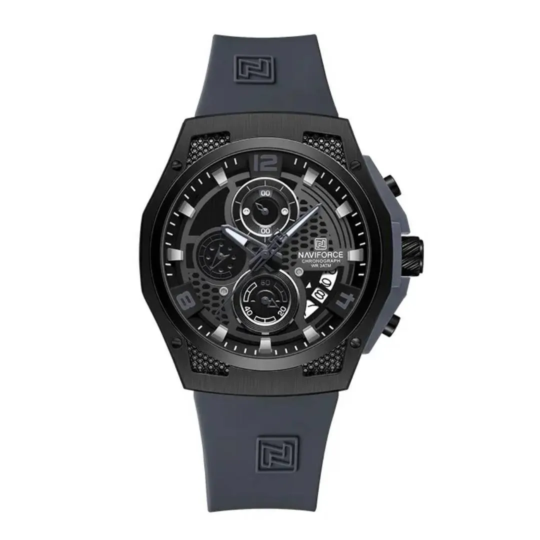 NAVIFORCE NF8051T Luxury Silicone Band Quartz Men's Watch – Dial Color: Black, Strap Color: Grey – View 1