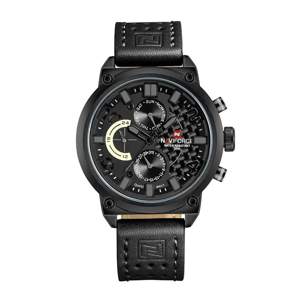 NAVIFORCE NF9068L Fashion Big Dial Multi-Function Waterproof Quartz Luxury Sports Men’s Watch – Dial Color: Black, Strap Color: Black – View 1