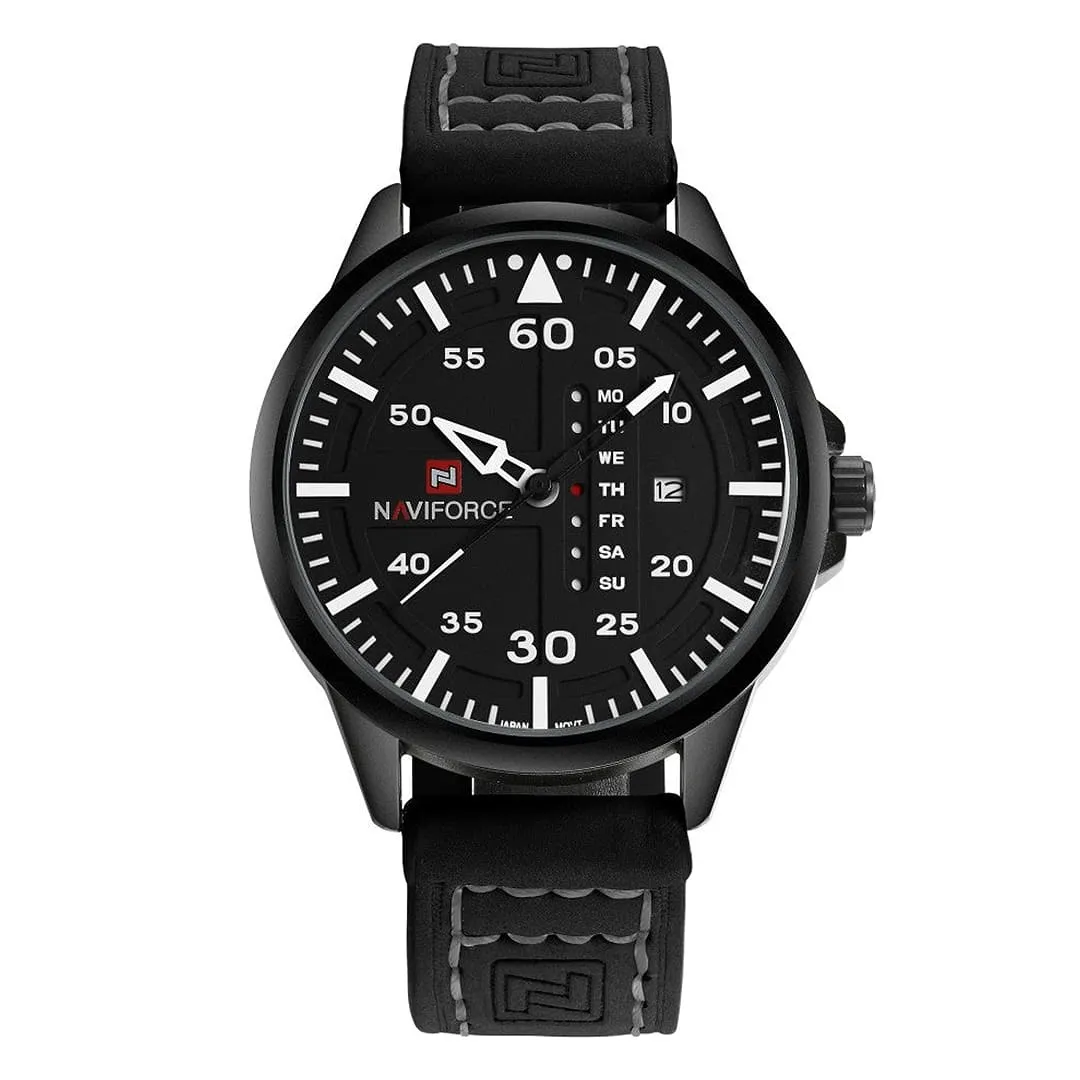NAVIFORCE NF9074 Luxury Military Quartz Sports Men's Watch – Dial Color: White, Strap Color: Black – View 1