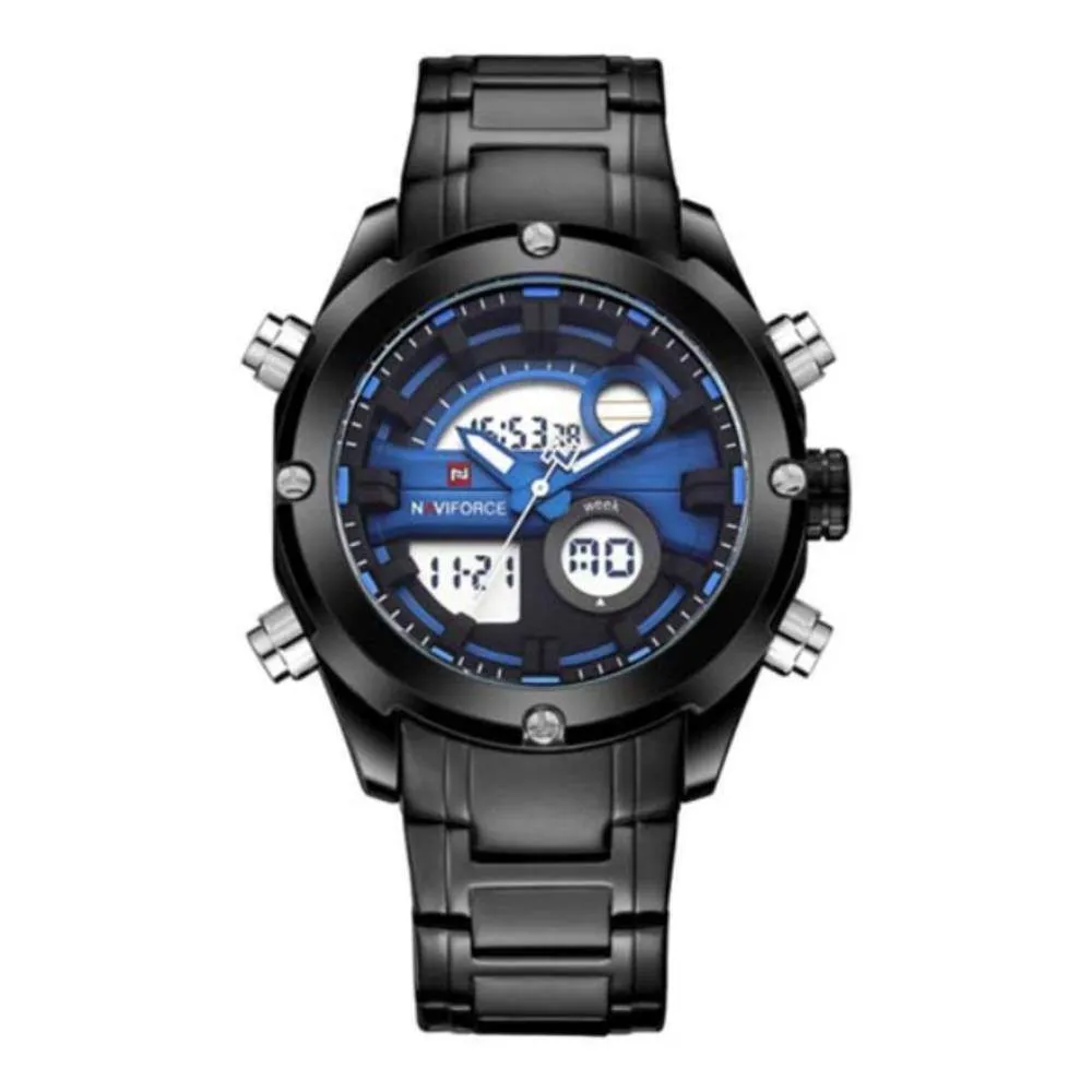 NAVIFORCE NF9088 Stainless Steel Dual Time Men's Watch – Dial Color: Blue, Strap Color: Black – View 1