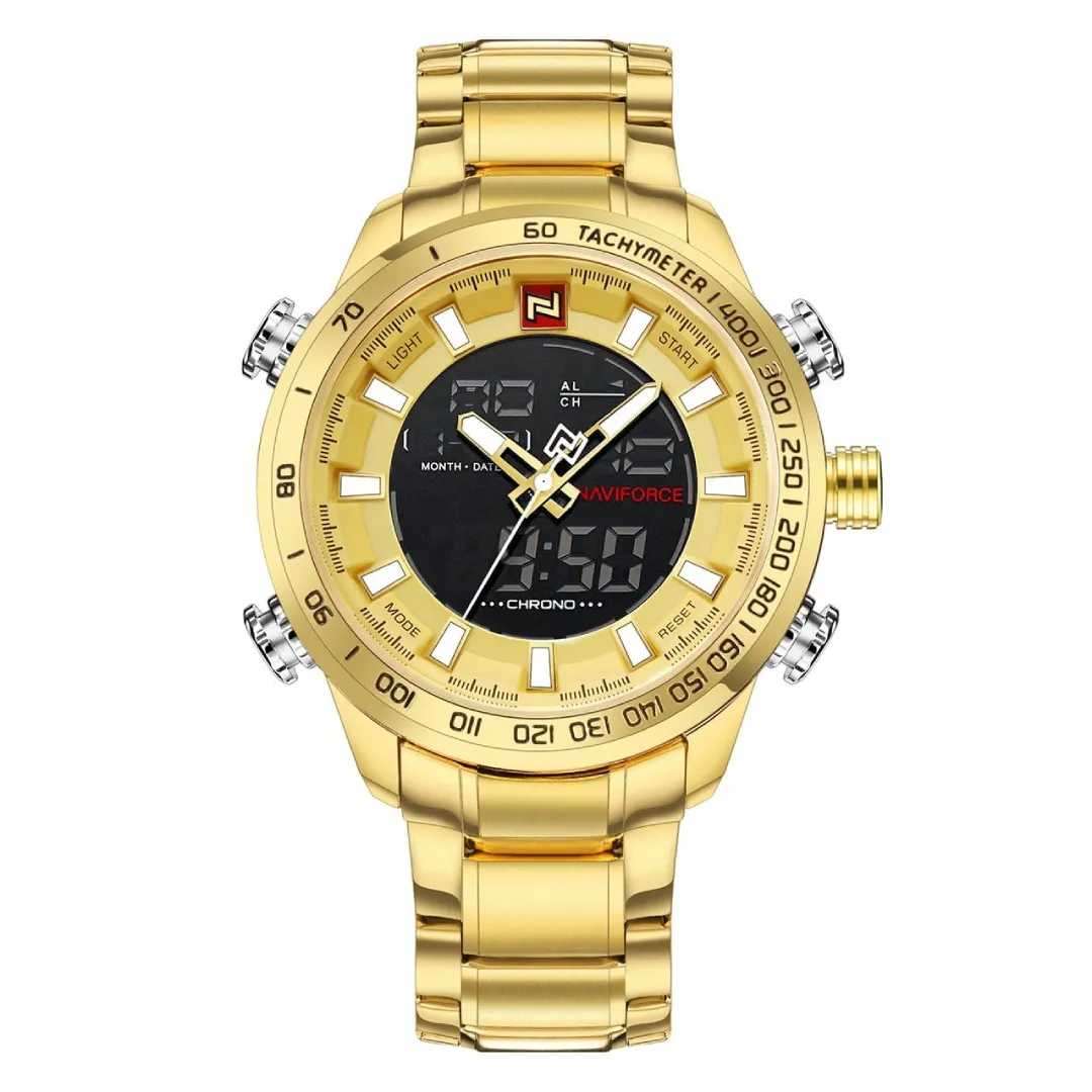 If you are looking for a men’s watch that mixes luxury look, durable build, and daily comfort, then NAVIFORCE NF9093 Men's Watch is a very fine choice. This watch comes with stainless steel body, which not only looks premium but also gives solid strength for long-time use. The design is modern yet classy, so it matches both formal dress and casual wear. On wrist, it feels comfortable because the strap is smooth but strong, making it good for office, party, travel or even daily routines. The big dial with dual time display is not just stylish but also very useful if you need to check two time zones together. Numbers and hands are very clear, so even in low light you can read time without a problem. Its glass is resistant to scratch, so no worry if you wear it daily. The overall build is heavy enough to feel strong but not too heavy to make wrists tired. You will feel it is more than just watch, it is like fashion accessory that improve your personality. This model stands out because of its mix of bold look, modern function, and durable material, giving you a balance of style and performance. Many watches look nice but do not last long, but the NAVIFORCE NF9093 keeps both quality and design in one package. If you want a watch that shows confidence and class without spending too much, this one is perfect.