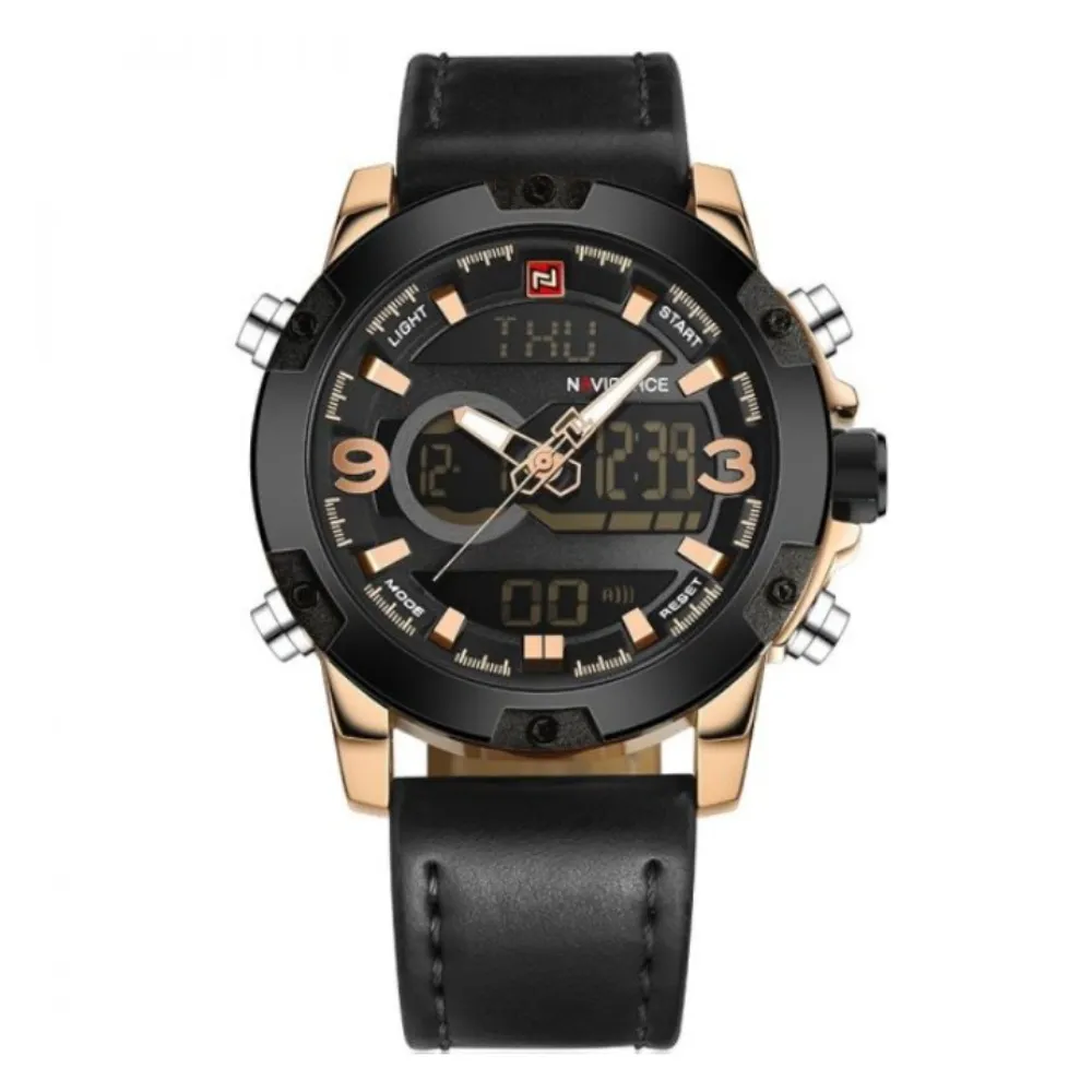 Naviforce NF9097 Luxury Brand Dual Display Sports Men's Watch – Dial Color: Rose, Strap Color: Black – View 1