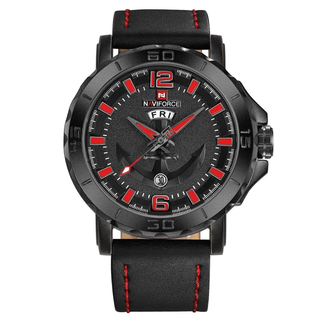 NAVIFORCE NF9122 Classic Japan Movement Waterproof Casual Men's Watch – Dial Color: Red, Strap Color: Black – View 1