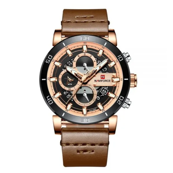 Naviforce NF9131 Analog Sports Leather Quartz Men's Watch – Dial Color: Rose, Strap Color:  Brown  – View 1