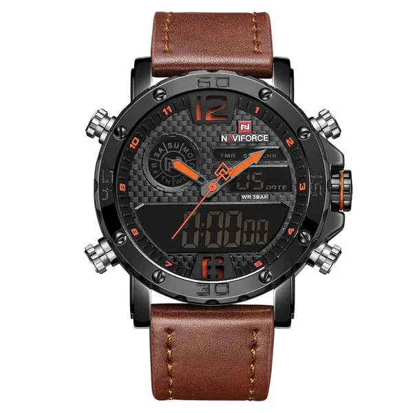 NAVIFORCE NF9134 PU Leather Analog Digital Sports Men's Watch – Dial Color: Orange, Strap Color: Black – View 1