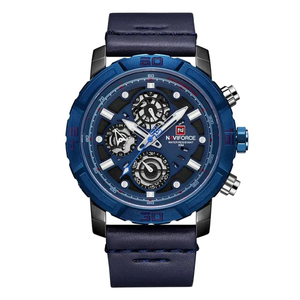 NAVIFORCE NF9139 PU Leather Chronograph Men's Watch – Dial Color: Blue, Strap Color: Blue – View 1