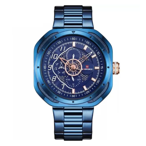 Naviforce NF9141 Luxury Stainless Steel Chronograph Men's Watch  – Dial Color: Blue, Strap Color: Blue – View 3
