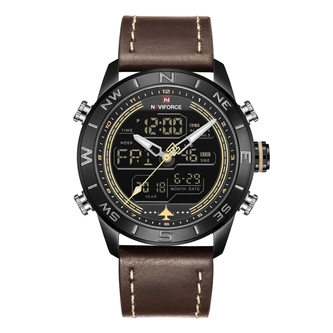 The Naviforce NF9144 Men's Watch is a watch that mixes luxury design with daily comfort, making it a solid choice for men who want both style and function in one piece. The first thing you notice is its premium leather strap, soft on the wrist yet strong enough for long-time use. The round dial with bold markers and detailed hands gives the watch a classy look that matches both casual outfits and formal dress. Its design balances a modern feel with a touch of tradition, so you can wear it in office, meeting, travel, or even party. The case is made from quality alloy that keeps shine and strength, and the mineral glass protect the dial from scratch. You also get water resistance, so no worries in light rain or daily splashes. Inside, the precise quartz movement keep time accurate without lag or delay, which is important if you follow strict routine. Many people like this model because it’s not just about showing time, it’s about showing personality – stylish, reliable, and confident. Wearing the NF9144 make you stand out without being too flashy, which is why it’s often chosen as gift for men of all ages. Whether you’re student, office worker, or business person, this watch sit perfect on your hand and give strong impression.