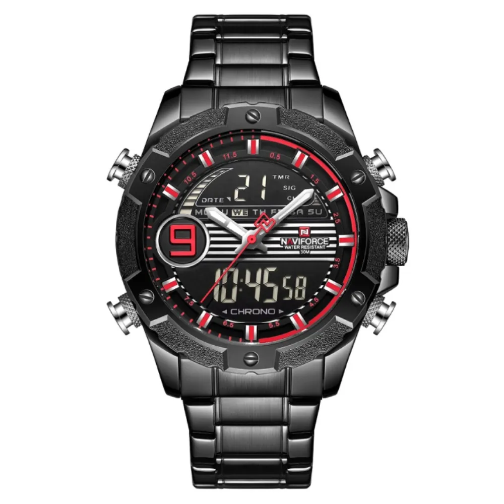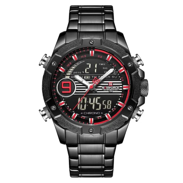 Naviforce NF9146 Double Time Waterproof Dual LCD Quartz Men's Watch  – Dial Color: Black, Strap Color: Black – View 1