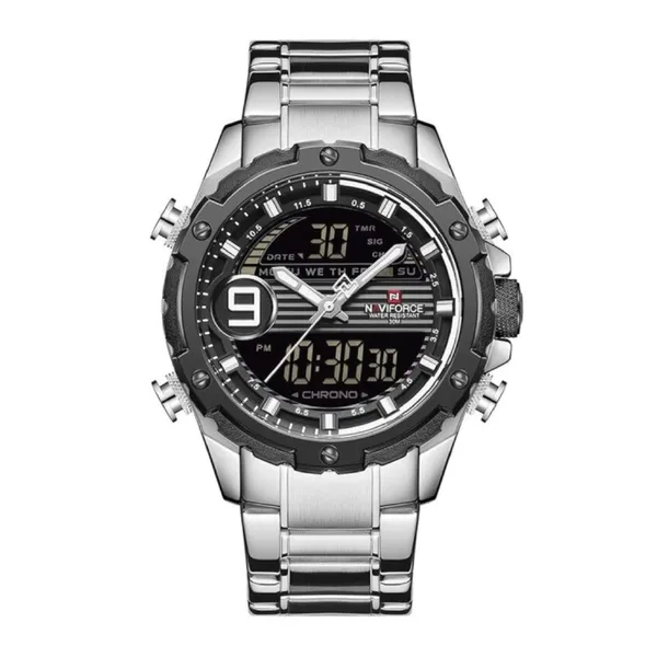 Naviforce NF9146 Double Time Waterproof Dual LCD Quartz Men's Watch  – Dial Color: Black, Strap Color: Silver – View 2