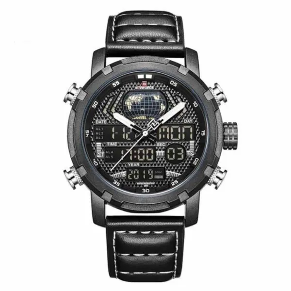 Naviforce NF9160 PU Leather Dual Time Men’s Wrist Watch