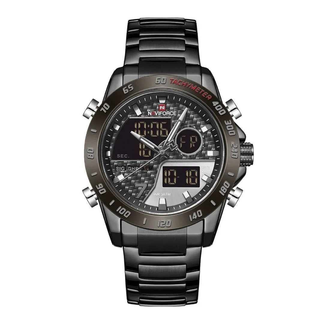 Naviforce NF9171 Fashion Stainless Steel Quartz Men's Watch  – Dial Color: Black, Strap Color: Black – View 1