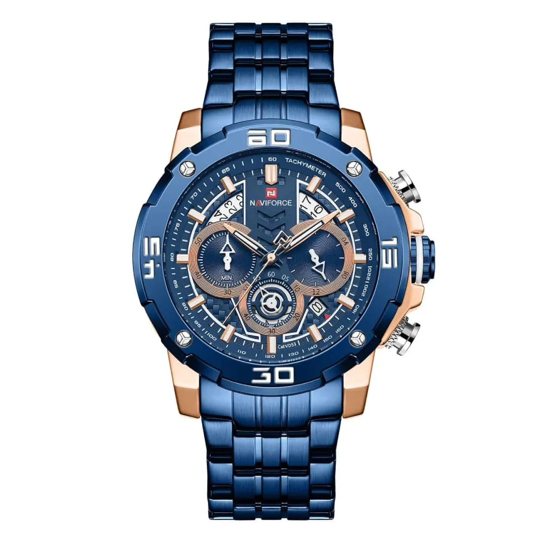 NAVIFORCE NF9175 Stainless Steel Chronograph Men's Watch – Dial Color: Blue, Strap Color: Blue – View 1