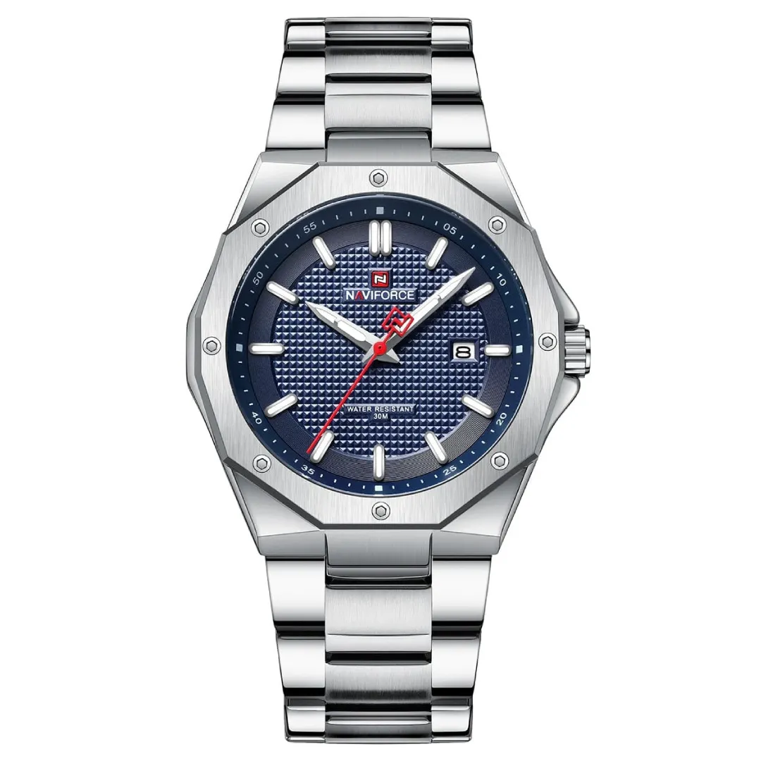 NAVIFORCE NF9200S Stainless Steel Analog Men's Watch – Dial Color: Blue, Strap Color: Silver – View 1
