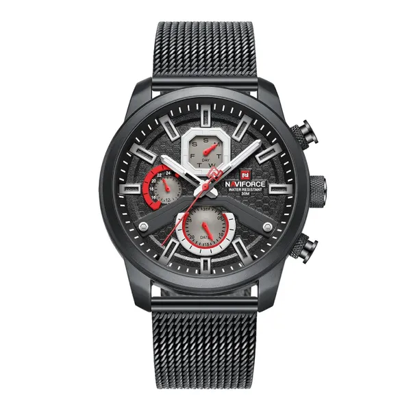 The NaviForce NF9211 Chronograph Men's Watch is a stylish and functional timepiece made for men who want both fashion and performance in one package. This watch stands out because of its stainless steel body that not only look premium but also give long-lasting durability for daily wear. The design is bold yet elegant, perfect for casual use, office wear, or even special events where you want to look smart. Its chronograph function add extra practicality for those who like to measure time in detail, while the luminous markers and hands make it easy to read even in low light or at night. The watch is designed with attention to detail, from the polished finish on the bezel to the comfortable strap that fits well on wrist. It bring a mix of modern look and traditional watch style, making it suitable for young professionals as well as mature men. The overall build quality feel solid, and the glass cover protect the dial from scratches. If you looking for a watch that not only show time but also show your personality, the NaviForce NF9211 is a perfect choice. It combine reliability, strong build, and stylish design in one complete package, making it a watch you can proudly wear anywhere.