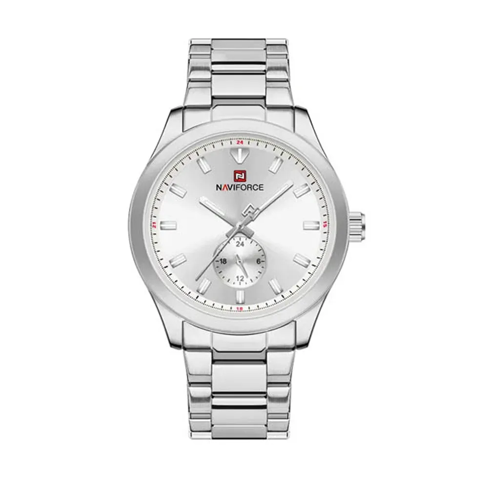NAVIFORCE NF9231 High Quality Stainless Steel Waterproof Analog Men's Watch – Dial Color: Silver, Strap Color: Silver – View 1