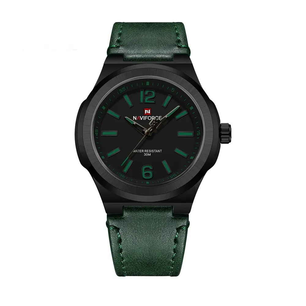 NAVIFORCE NF9233 Genuine Leather Strap Quartz Comfortable Men's Watch – Dial Color: Green, Strap Color: Green  – View 1