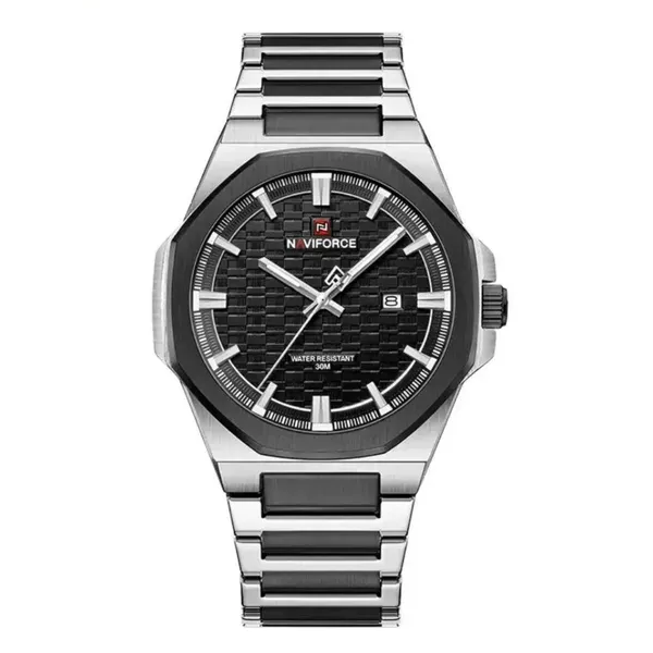 NAVIFORCE NF9245 Men's Watch is a stylish men's wrist watch that mix modern polygon shape with strong build quality. It come with full steel body that shine nice and looks premium on hand. The polygonal design make it look different from other round watch, give bold and classy feeling both together. You can wear this watch for office, meeting, or casual outing, it fit every place perfect. The dial have clear time marking that easy to read even in low light. Strap is made from stainless steel that feel strong but also comfortable on wrist. The watch show both time and date so you always stay on track. It built with attention and care, every detail show solid craftsmanship. It not just timepiece, it part of style that show confidence. People who like heavy look watch will love this one for sure because it feel solid and look expensive. You can use for long time without color fade or scratch easy.