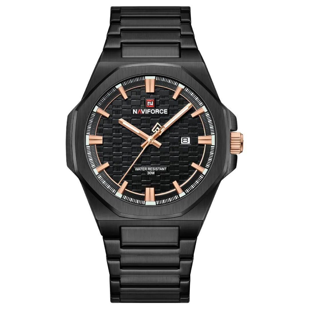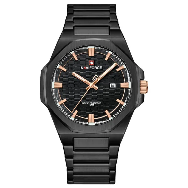 NAVIFORCE NF9245 Men's Watch is a stylish men's wrist watch that mix modern polygon shape with strong build quality. It come with full steel body that shine nice and looks premium on hand. The polygonal design make it look different from other round watch, give bold and classy feeling both together. You can wear this watch for office, meeting, or casual outing, it fit every place perfect. The dial have clear time marking that easy to read even in low light. Strap is made from stainless steel that feel strong but also comfortable on wrist. The watch show both time and date so you always stay on track. It built with attention and care, every detail show solid craftsmanship. It not just timepiece, it part of style that show confidence. People who like heavy look watch will love this one for sure because it feel solid and look expensive. You can use for long time without color fade or scratch easy.