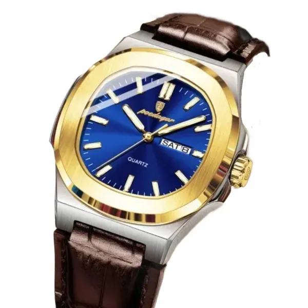 Poedagar 853L Quartz Square Waterproof Luminous Men's Watch – Dial Color: Blue, Strap Color:  Brown  – View 1