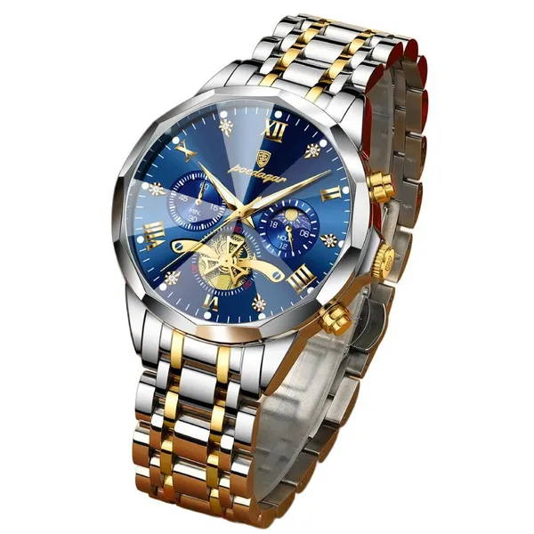 Poedagar 938 Luxury Stainless Steel Chronograph Men’s Watch is one of those watches that look rich and classy but still come in good price. It made with full stainless steel body that feel solid and strong on hand. The color shine nice under light and the weight give real watch feeling, not cheap one. The design is modern but also simple enough for any dress or event. You can wear it in office, party, meeting, or even daily use, it match with all. It have chronograph feature, so you can check time, minute, and second in one place. The glass on top is clear and scratch resistant, so no worry for daily use. Inside machine work smooth and accurate, so time never go wrong. The strap also stainless steel, and lock system hold tight but still easy to open. People who wear this type of watch, they know it give different confidence when on hand. Poedagar 938 not only show time, it also show your style and taste.