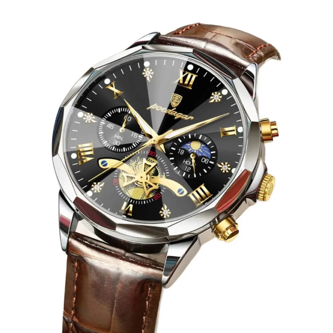 If you like watch that look strong but still classy, Poedagar 938L Men's Watch is something you gonna like. This one got that military vibe with bold design, but also give luxury feel like expensive brand watch. The build feel solid in hand, not light cheap type. It’s made with stainless steel body, so it last long and don’t lose shine. The glass is scratch resistant, so you can wear daily without worry. The luminous dial glow in dark, so you can still check time at night or low light. Perfect for office, party, or even outdoor trip. This watch use Quartz movement, so time stay accurate and not need daily setting. It’s both style and reliability in one piece. The design mix of black and gold tone, look powerful and smart. You can wear it with suit or casual shirt, both look good. The strap is strong and feel premium on wrist. It not only show time, it show your personality too. Many people wear watch for show, but this one got actual quality behind it. So yeah, Poedagar 938L is not just for look, it’s for people who like good build and clean style.