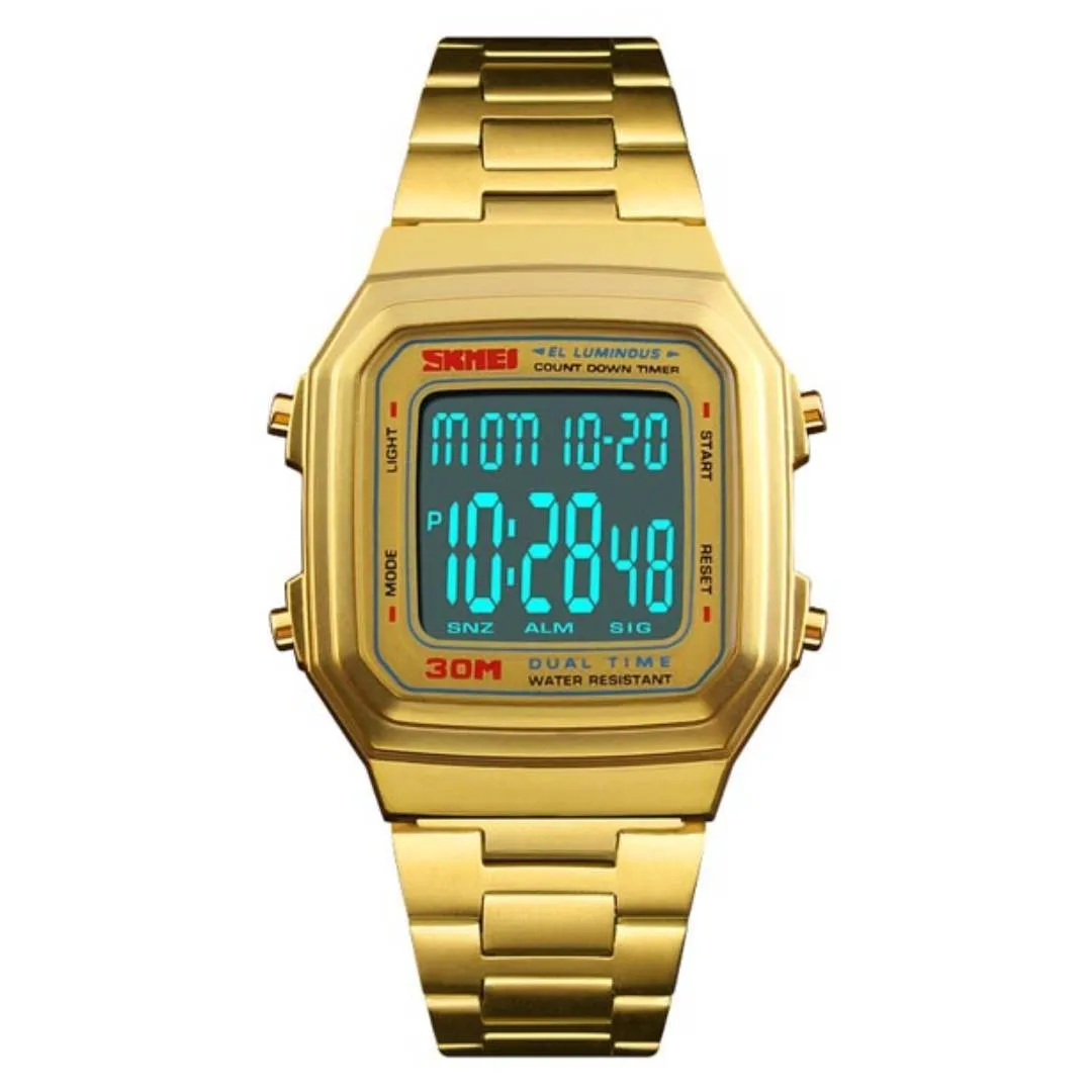 Skmei 1337 Stainless Steel Square Men's Watch – Dial Color: Gold, Strap Color: Gold  – View 1