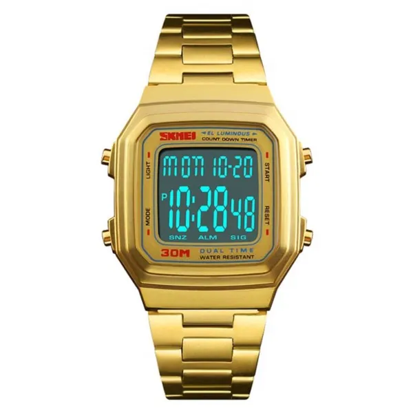 Skmei 1337 Stainless Steel Square Men's Watch – Dial Color: Gold, Strap Color: Gold  – View 2